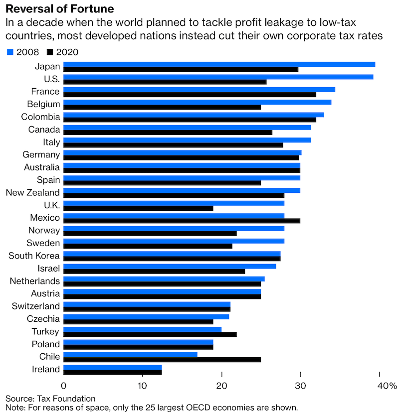 Firstly, Yellen proposed a minimum corporate tax rate globally of 21%, which is actually lower than than New Zealand’s current 28%, but above the beggar-thy-neighbour rates of 12.5% in Ireland, 9% in Hungary and the no-tax jurisdictions in the Caribbean.