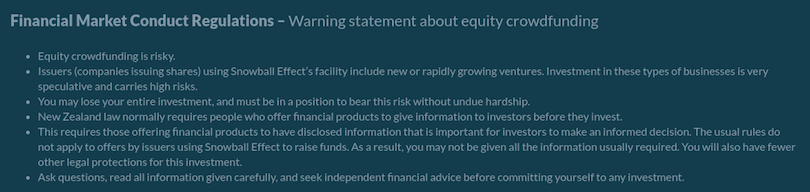 Equity offers are a bit more transactional. Some are driven by fans or communities rallying to support a beloved company, but others are totally impersonal investment pitches. In either case, people are putting their hard-earned money on the line in the expectation of receiving something a little more tangible than a basket of warm fuzzies and goodwill to mankind. After all, they’re taking on a pretty big risk. Here’s the warning that platforms and issuers have to display: