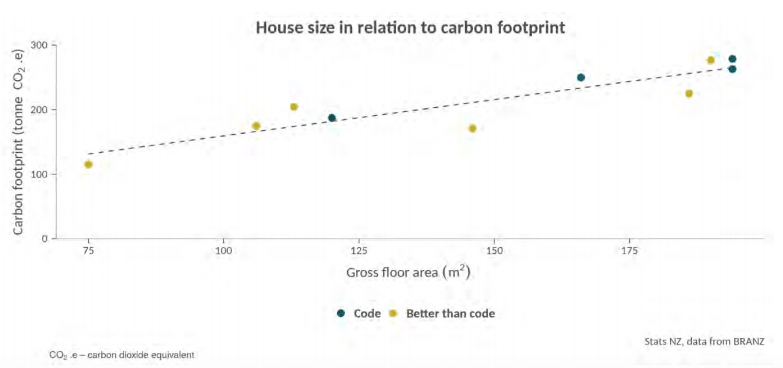 The New Zealand construction sector represented about 16% of total greenhouse gas emissions in 2018. Because new houses are typically larger than older ones – a third of houses now have four or more bedrooms compared with one-fifth in 1991 – land use, and therefore the carbon footprint, increases. The poor quality of many old houses meant that occupants were having to use a great deal more energy to heat or maintain them.