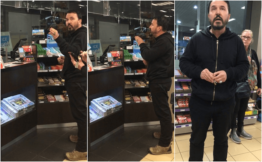 At one point while waiting for the police, Sharn and Jamie go to the Z Petrol Station across the road to get a coffee. They ask the attendant if other people have been clamped and have to go through this bizarre dance.