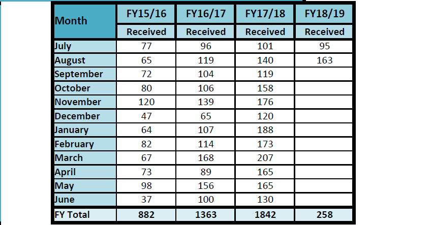 In the 12 months to June 2016 it received 882 reports; by June 2018 that number had jumped to 1842.