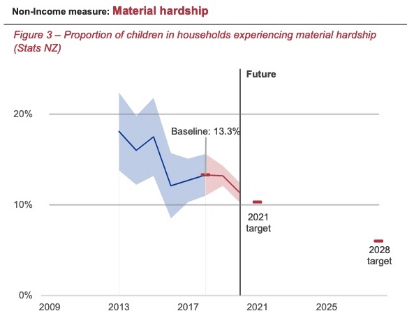 Some bold steps were taken early on. Shortly after being elected, the government announced a $5.53 billion families package which included a boost for Working for Families payments, a new $60-a-week Best Start payment for babies and increased paid parental leave. Benefits have also been lifted since. But progress towards the targets have so far been underwhelming.