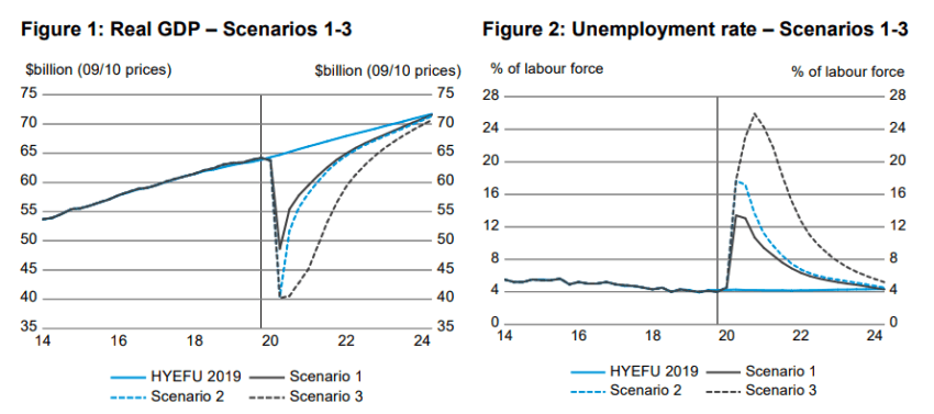 A range of scenarios has been released by Treasury, modelling the potential impact of Covid-19 on the economy. How bad could the damage be? Here’s a cheat sheet.