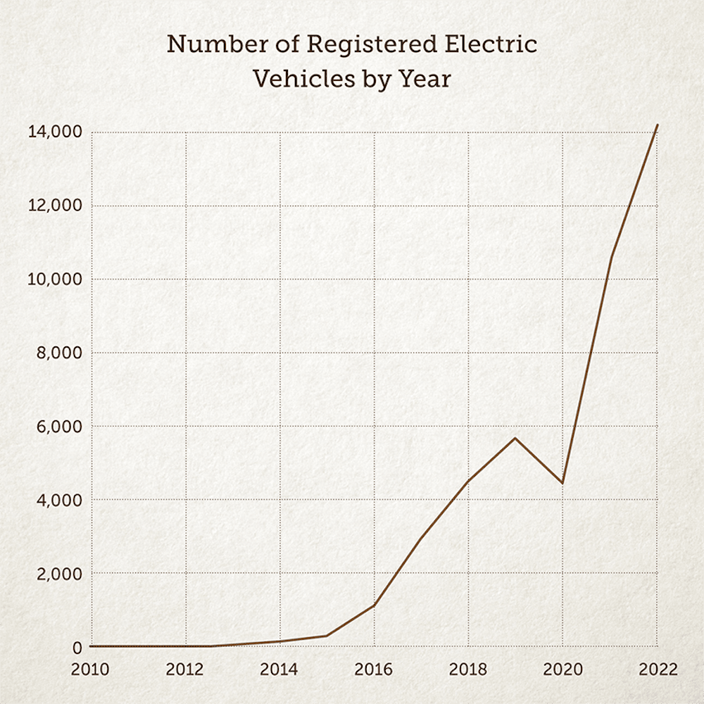 Our analysis is based on the soaring growth of low emission car purchases. In 2014 there were fewer than 100 EVs registered in New Zealand. By 2018 there were 4123. In the first nine months of 2022 the number shot up to 13,034. Hybrid car sales are even higher, with close to 5000 new hybrid vehicles registered in September 2022 alone.