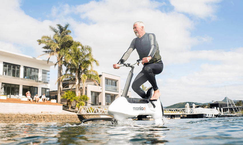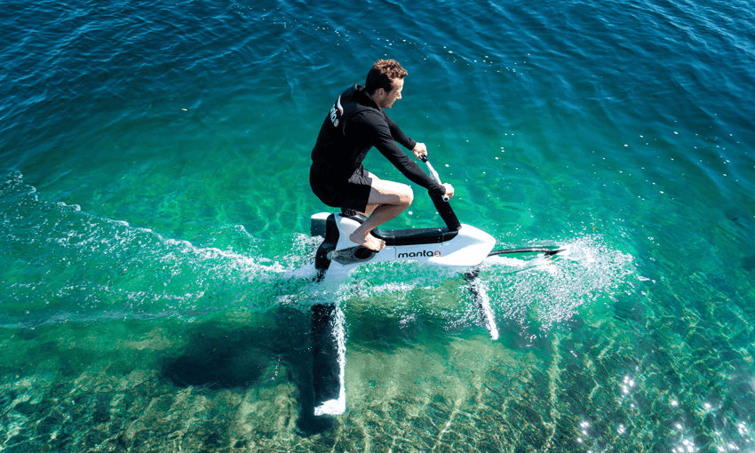 During that time, we had to prove the bike could foil (ie: glide on top of the surface of the water). We’d go to an open-air swimming pool in Tauranga to test it out. We’d go late at night because we didn’t want anyone seeing us. It was freezing cold.
