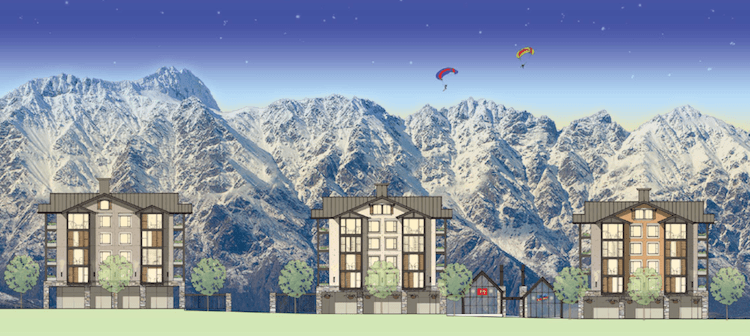 Concept drawing from Mason & Wales Architects for New Ground’s planned affordable housing project at Remarkables Park, Queenstown