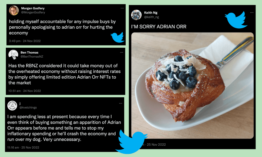 The last one is perhaps the most underrated: telling us off. That’s where “cool the jets” came along – it was Orr moving from the technical language of the central bank economist to the vernacular phrasing of a normal-seeming person. “Think about saving rather than spending – I know that’s a strange concept,” he joked (I think it was a joke). While some were mad about it, viewing it as deeply ironic that someone who fuelled the jets in the first place now demanded we cool them, it nonetheless achieved exactly what it was meant to, vaulting from the dry confines of a monetary policy press conference to the top of the 6pm news.