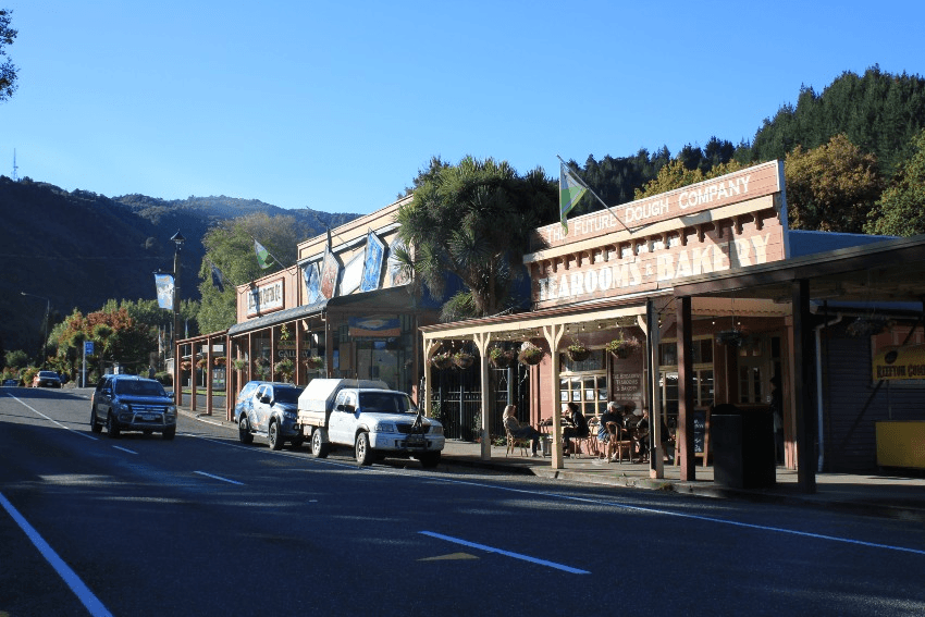 A historic gold mining town, it’s nicknamed the Town of Light for having the first public supply of electricity in New Zealand. The town’s colonial buildings have been revitalised over the past few years. Home of the Reefton Distilling Co. Pop 927.