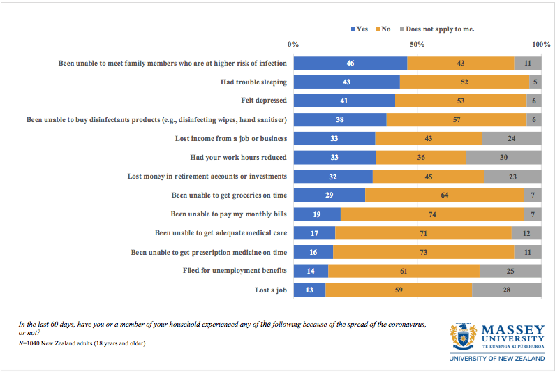 In a recent survey by Massey University, almost half of respondents reported having trouble sleeping, experiencing depression, or feeling cut off from their social networks.