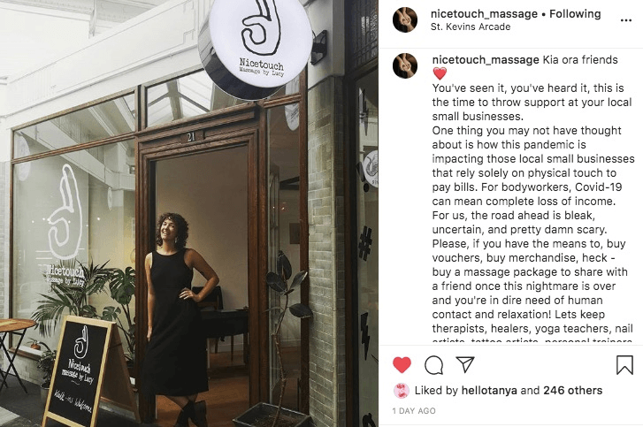Lucy Suttor of Nicetouch massage on K Rd is usually fully-booked for the week by Tuesday. “Last week I started noticing bookings dwindling a little bit, but this week I have seen over 70% of my clients cancel. I’m in a unique situation of not only being a small business, but a small business that relies on physical touch to pay the bills.”