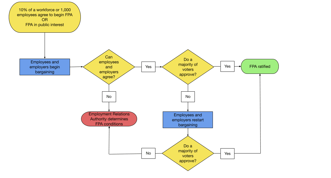 The bargaining process can begin if at least 10% of a workforce or 1,000 employees agree to begin an FPA, or if it’s in the “public interest” to do so, such as in low pay industries.