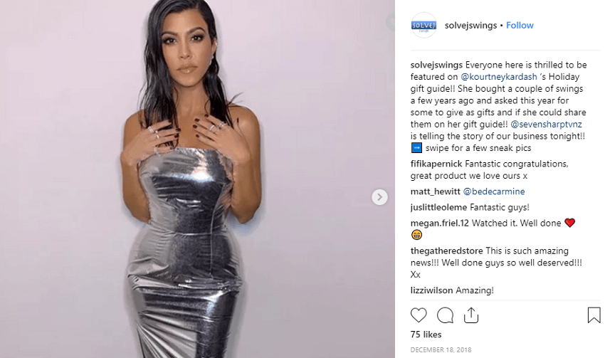 SIX: Last month, Kourtney Kardashian included Solvej Swings on her 2018 Holiday Gift Guide. How did she come into contact with your product and what effect did this endorsement from Kourtney have on your business?