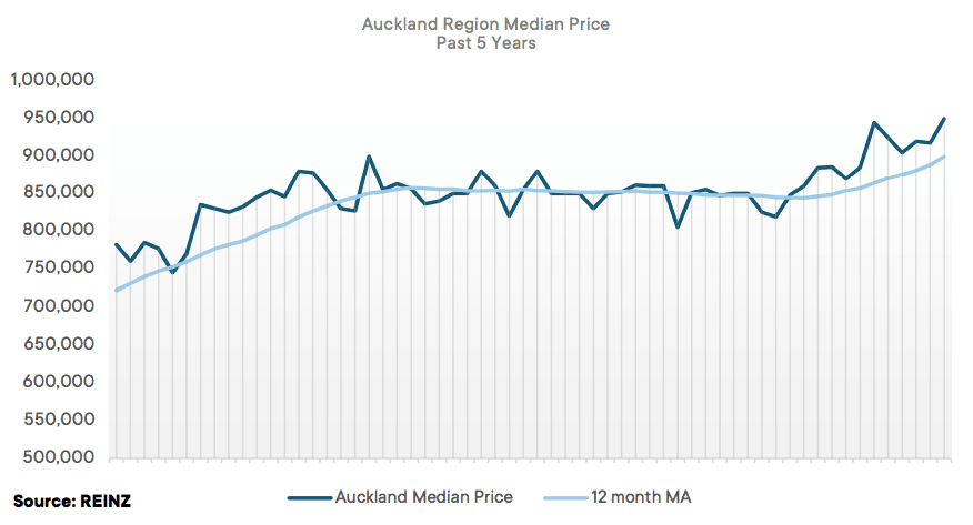 In Auckland, median house price increased by a record 16% to $950,000 from $819,000 at the same time last year, and up from $918,097 in July this year.