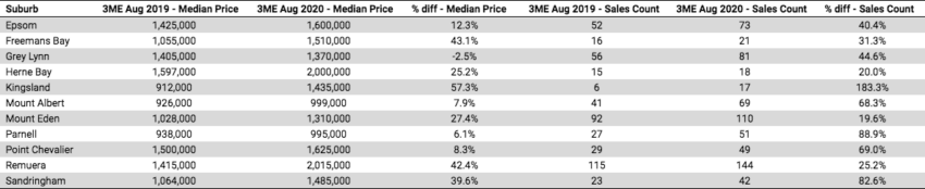 The anecdotes are everywhere, but what does the data say? According to Reinz, last month’s median house price across New Zealand increased by 16.4% from the same time last year to $675,000 – up from $580,000 in August 2019 and up from $659,000 in July.