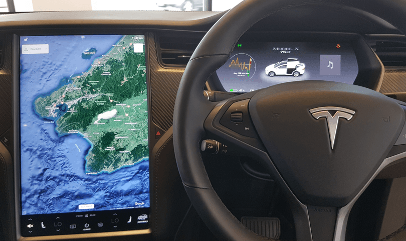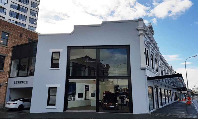 Approaching the showroom from the eastern end of K’ Road – past the kebab shops, dive bars, and anti-1080 posters – the first thing you see is Tesla’s cross-like logo, emblazoned large on the outside of its front-facing wall. Keep walking and you see ceiling-high windows where Tesla’s Model X and Model S cars sit dormant on display. In fact, it’s more like an Apple store than your average car dealership. After all, the two companies aren’t all that dissimilar (a Silicon Valley-based leading tech company creating minimalistic products evangelised by a charismatic leader and fiercely ardent supporters, anyone?).