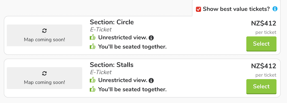 Earlier this week, tickets for Dua Lipa’s show in November 2022, went on sale, again through Ticketmaster. When I checked Viagogo just a few hours after the official on-sale time, dozens of tickets had already been listed. While I searched, a message popped up: “A customer bought four tickets to Dua Lipa in Auckland an hour ago,” it said. Whoever that is, I feel sorry for them.