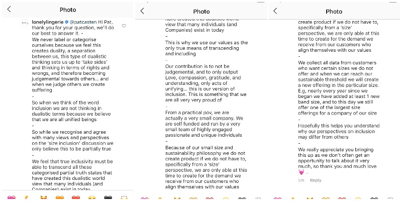Local lingerie brand Lonely is well-known for celebrating a diverse range of bodies and preaching messages of inclusion and body positivity. So why are they deleting comments and blocking users offering critical feedback on their size range?
