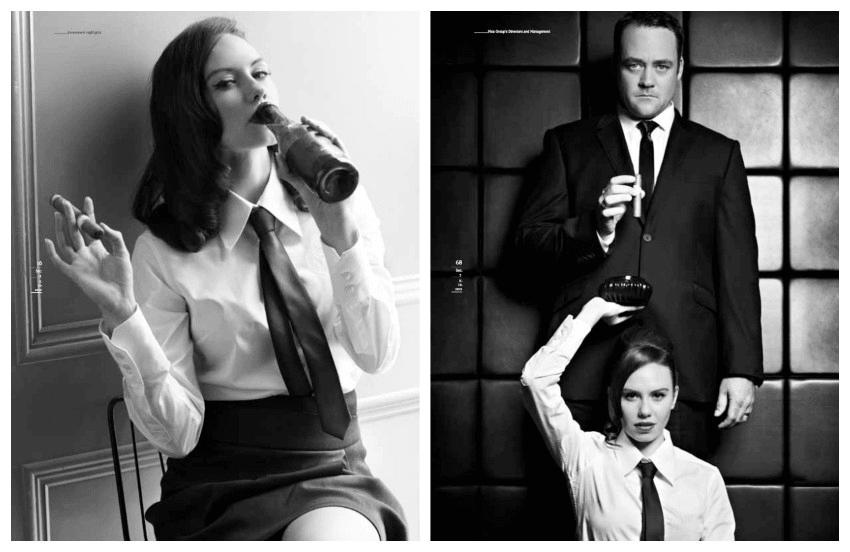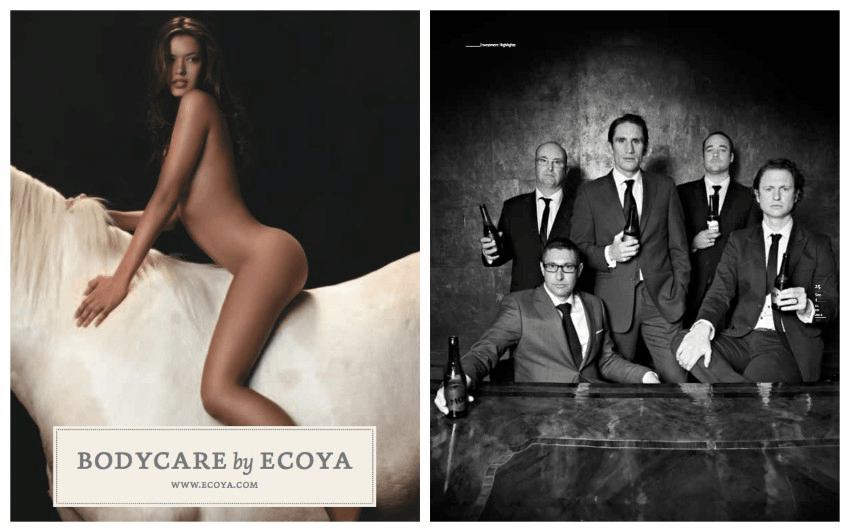 Its magnum opus was the infamous 2012 IPO shareholder prospectus: a 132-page magazine-style booklet with a dubious “Mad Men” theme, with photos of company directors dressed in suits, smoking cigars and drinking beer alongside models in white blouses and short skirts. It included tips on achieving “moments of modern manhood” and on other pages displayed ads for high-end companies: Beretta rifles, Aston Martins and a naked woman on a white horse peddling candles by Ecoya, a company also run by Moa CEO Geoff Ross.
