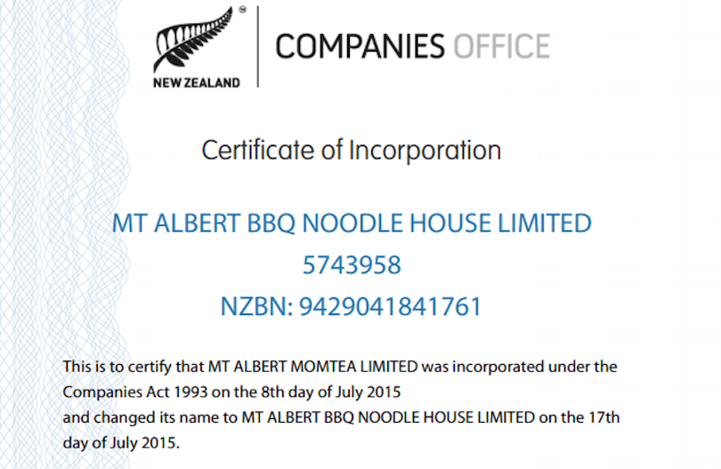 On the 17th of July 2015, MT ALBERT MOMTEA LIMITED changed its name to MT ALBERT BBQ NOODLE HOUSE LIMITED. To the casual diner, the old classic had simply moved next door. The original sandwich board was put up outside 930 New North Rd and a new sign was installed proclaiming “Original BBQ Noodle House”. Huali tirelessly manned the entrance, making sure everyone knew that Mt Albert BBQ Noodle House had moved, albeit two metres to the left.