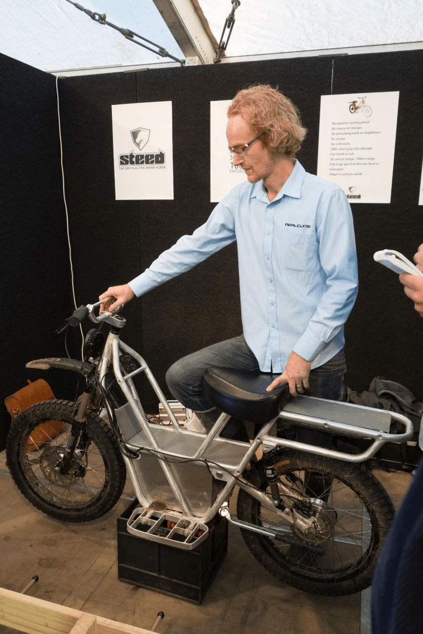 That change in perception, and the recent eruption in enthusiasm for electric vehicles, explains a large part of UBCO’s growth from a grassroots company to a global EV provider. But it was a different world in 2014, when electric bicycle pioneers Daryl Neal and Anthony Clyde brought their first prototype – a two-wheel drive electric utility bike called the “steed workhorse” – to the Mystery Creek Fieldays. The bike caught the attention of Timothy Allan, whose R&D company Locus Research was sponsoring the event.