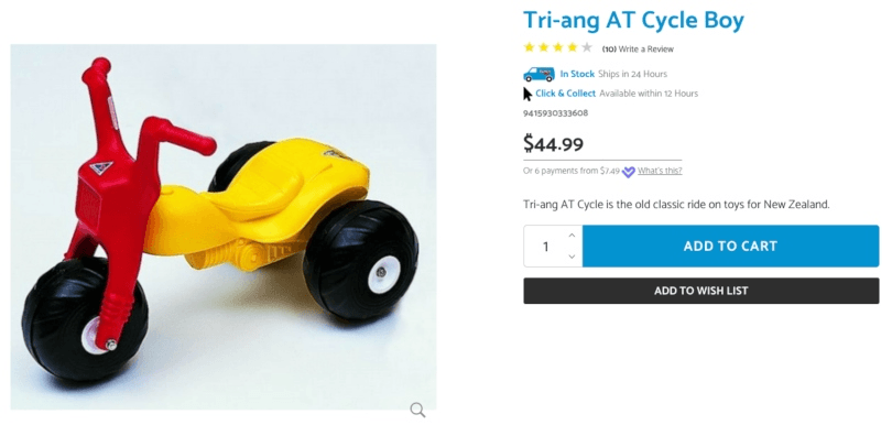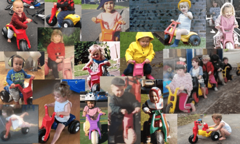 Walk past any daycare centre or kindy in New Zealand and you’ll hear the sound of plastic wheels on concrete, or plastic wheels on decking. That’s the Triang A.T. Cycle, and if it’s not, it’s one of the many knock offs.