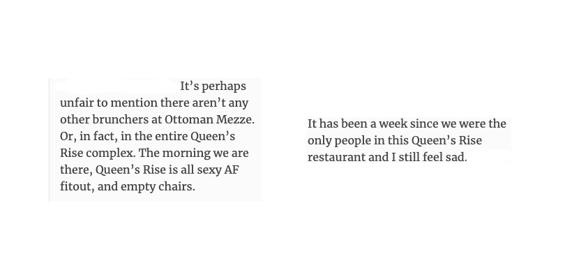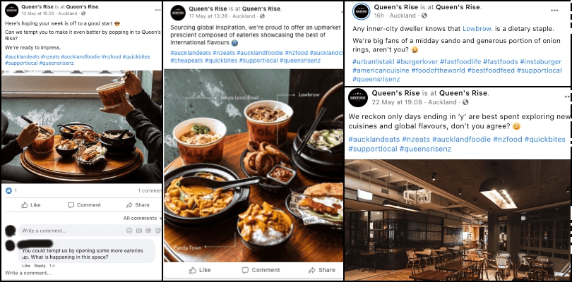 Today, while the decals on the windows facing Queen Street still scream “open till late”, passers-by will find the imposing green doors on the heritage facade of Queen’s Rise closed most of the time. The Queen’s Rise Facebook and Instagram, which still say “open from morning until late night”, plough on, posting apparently automated updates every Monday that don’t hint at the fact this “upmarket prescient [sic]” appears to be on its last legs. On May 14, a post about Lowbrow, once Queen’s Rise’s star tenant, appeared, despite the fact Lowbrow closed its location there some time ago. According to a response to a message sent to the Facebook page, Queen’s Rise’s opening hours are now 11am-4pm weekdays, though it appears that’s applied loosely.