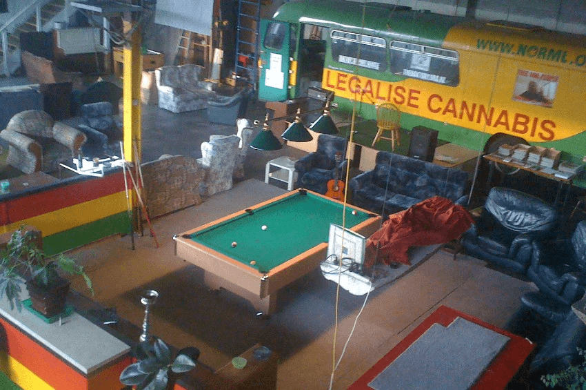 We got to the counter, my friend bought a gram of “Kush”, collected a bong, and we proceeded inside a large warehouse where several dozen people were mingling. Some were sitting on couches, others were playing pool or table tennis. All of them were smoking weed.
