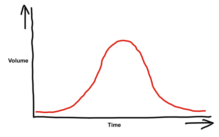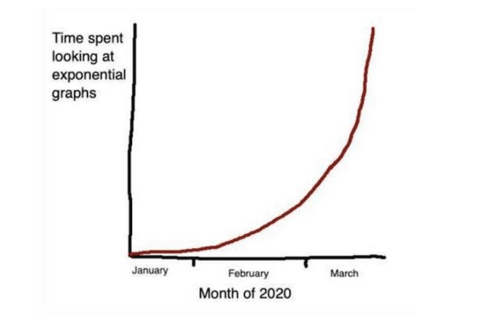 It was a graph with January, February and March on the horizontal axis and “time spent looking at exponential graphs” on the vertical axis.