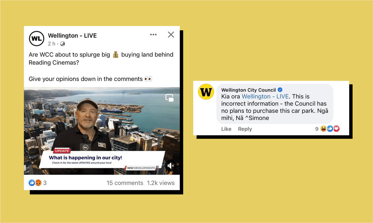In June 2023, the council did publicly call out the page for “incorrect information” after Bloxham posted a video of himself claiming Wellington City Council was planning to purchase the carpark building behind Reading Cinemas (it wasn’t, said the council).