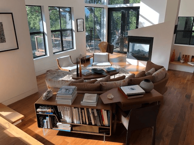 Fortunately, says Ross, we have agency over what we surround ourselves with. Hence her mammoth commute to Mill Valley, to the forest and hideaway hills where the living room of the home she helped design is softened with colours of the earth and a 50s-style fireplace is the snug counterpoint to a deck that cantilevers beneath a magnificent oak tree.