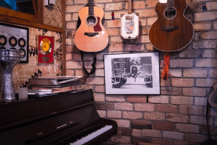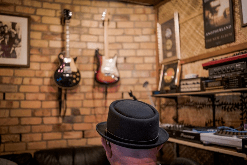 Yeah, usually noodling, playing guitar and piano and finding little sparks and keeping them as little notes and then the ones that keep coming back at you and drive you crazy are generally the ones that stick around. Because you’ve got to get rid of them. You’ve got to stop them ringing around in your head. And the only way to do that is to finish them. But the best way to burst through that is to travel or just play with somebody else. It’ll find its way to come out. The older you get, the more you’re prepared to surrender your process to surprise. I never put anything on tape unless I’ve got a structure of a song. So I play with grooves a lot until I’ve got something. Otherwise, you’re recording too early and it’s too easy to do that these days as there’s too many toys. As you can see [points to racks of synths and other instruments].