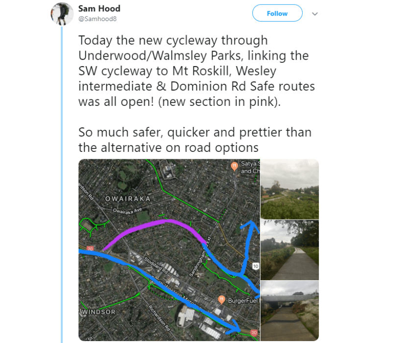 It’s a beautiful route and shows expansive, people-friendly cycle paths are already available in Mt Albert. Just don’t look to the town centre.