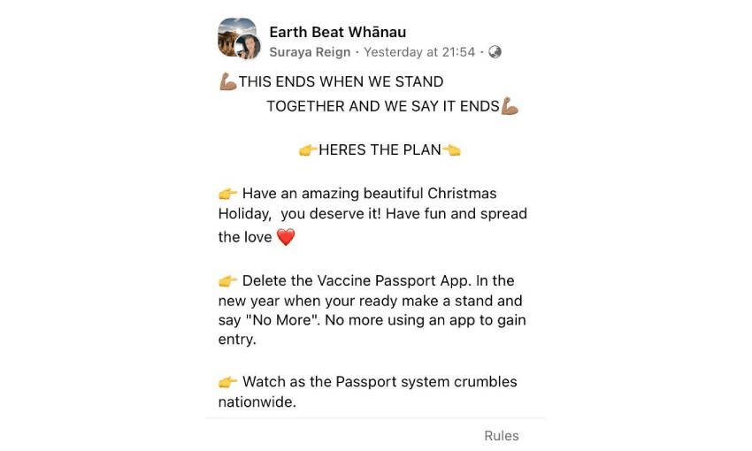 On the other, less legal, hand some festivals may flout the traffic light system altogether. Earth Beat, which is meant to take place next March in Auckland, has an attendee asking their fellow festival-goers delete the vaccine pass from their phones. “Watch as the Passport system crumbles nationwide [sic],” a Facebook post reads.