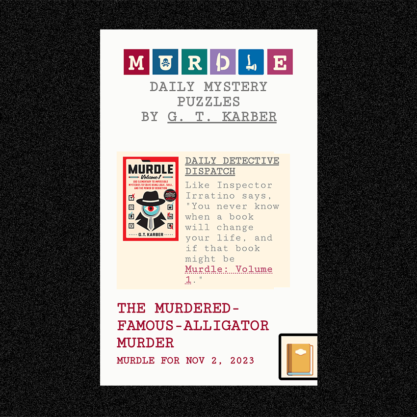 Like an online game of Cluedo with suspects, locations and weapons where clues help you narrow down your suspects and their MOs in order to make an accusation. It might be fun for Professor Peacock, but just doesn’t fill my puzzle bucket and deviates too far from the formula to be worthy of its “URDLE” suffix.
