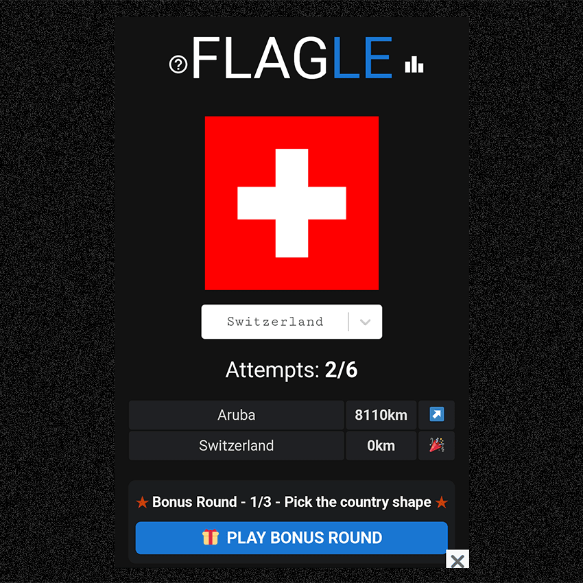 I have always loved the cheerful colours and simple patterns of flags, and Flagle provides a welcome rest for word-weary eyes as you guess a country based on six tiles of a flag that are slowly revealed with each subsequent guess. Given the repetition of colour combos and symbols, it is harder than it sounds: if, for example, you are given the top left hand corner with a Union Jack, there are 20 or so possible guesses. It makes me wish that we had an iconic flag as even amateur vexillophiles (flag enthusiasts) could easily mistake ours for our fair dinkum mates across the ditch when playing this game.