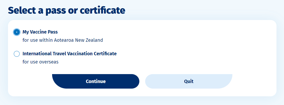 What follows is the process for signing up online to receive your My Vaccine Pass. To do this, you’ll need an official New Zealand or Australian government identity document and your own email address.