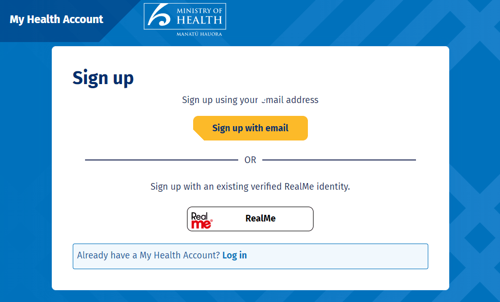 Hit the Sign up button and you’ll be presented with two options, Sign up with email or RealMe.