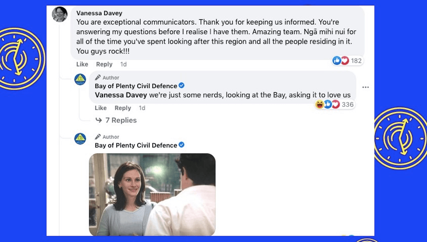 Irvine says that the page is a “brilliant” example of crisis communication. “You can see it in all the comments – this was just what people wanted. I got a really warm, fuzzy feeling about the Bay of Plenty community, like they were going through a tough time but doing it all together.” He even noted one commenter invited the social media team over for a port, which didn’t get past Glass either. “I thought that was so cute – not a beer or a wine but a port? You stay classy BoP.” Even classier still was the local asking her whether he could still heat up his knives.