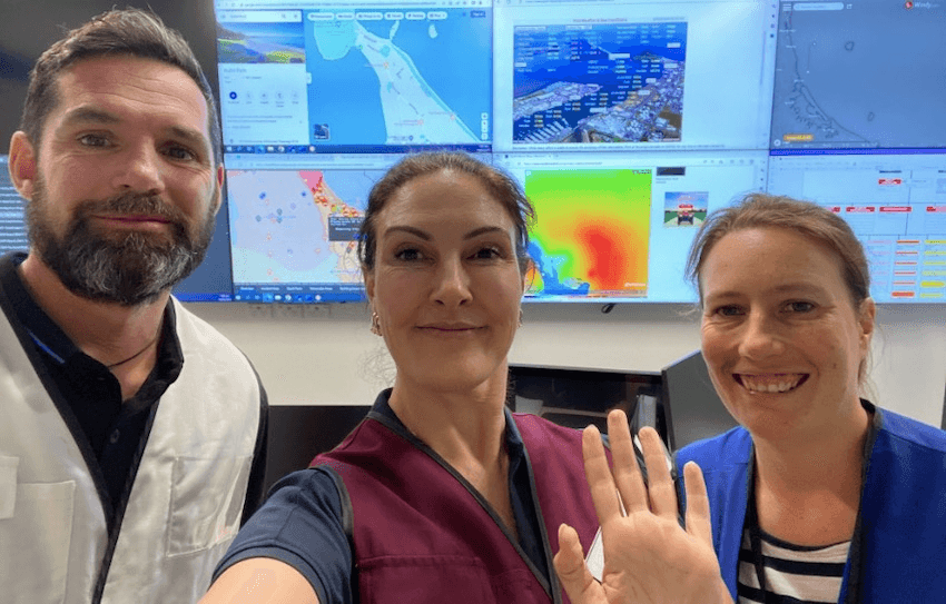 Thankfully, the coastal inundation that was keeping locals awake did not eventuate and, just before 2am, Glass found a colleague’s sleeping bag and signed off for the night. “Time for you to get some sleep if you can,” she wrote, before taking a tired selfie with colleagues and sharing it to the page.