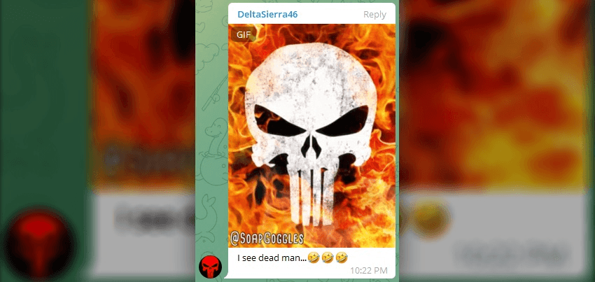 The threat that provoked me to write this article took the same form. My work was brought to the attention of thousands among the many Telegram groups of the local conspiracy community. The post was shared widely and various commenters weighed in. “Will just add this person’s name to the Crimes Against Humanities list,” posted “Amy” in one reply, apparently ensuring my inclusion in the upcoming tribunals. A post from “DeltaSierra46” was more direct: “I see dead man…” they replied along with an image of the Punisher skull on a background of flames.