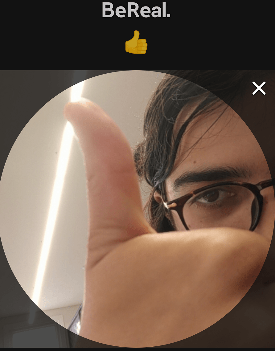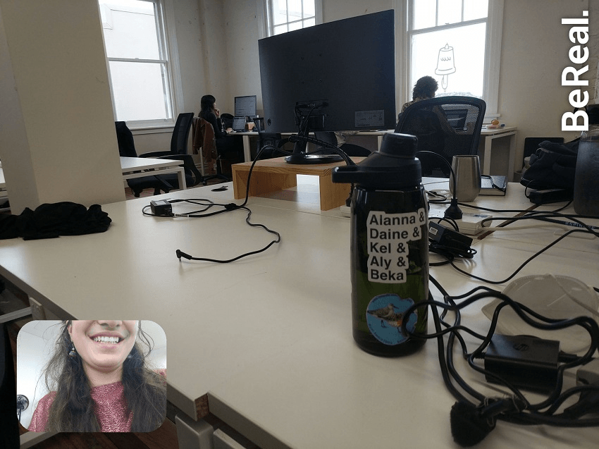BeReal works like this: once a day, at a random moment, the app sends you a notification. Within two minutes of receiving the notification, you take a picture with both your front and back facing cameras. You post the picture. If you post it late, you’re labelled as having done so. If you haven’t posted your BeReal, you can’t see your friends’ posts.