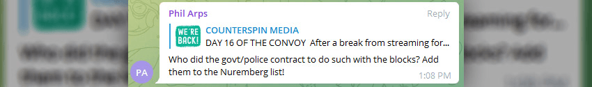 While most of this backlash is probably best categorised as a nuisance, there always remains the spectre of real harm. In the hours after police and their trucking allies had left the scene, notorious white supremacist Phil Arps, recently arrested for making death threats, was seeking their identities on Telegram, posting: “Who did the govt/police contract to do such with the blocks? Add them to the Nuremberg list!”