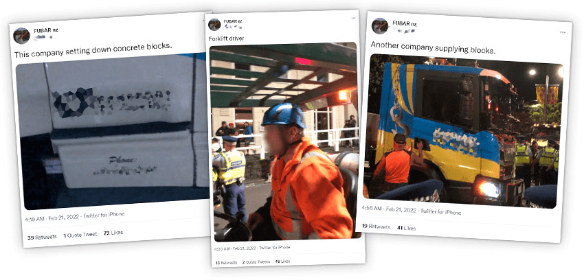 For the companies called upon by the cops to haul the concrete monoliths to downtown Wellington, it wasn’t like any normal job. Feedback after completing the job hasn’t been typical, either – one of the companies saw their Google review rating sink like a stone as their total ratings more than doubled thanks to 1-star responses from protest supporters.
