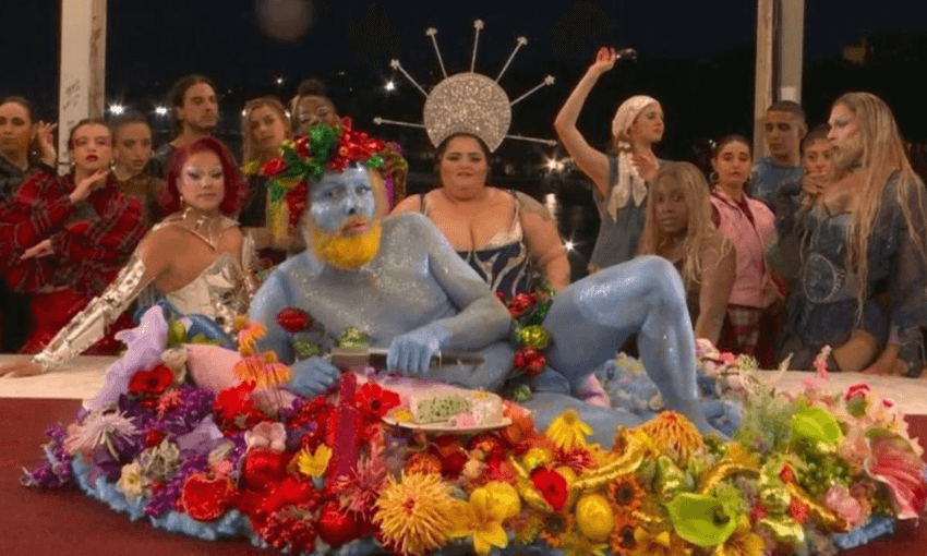 The portion of the ceremony featuring 17 drag artists has been described by media and the righteously outraged everywhere as “evoking” the famous Da Vinci painting The Last Supper”.