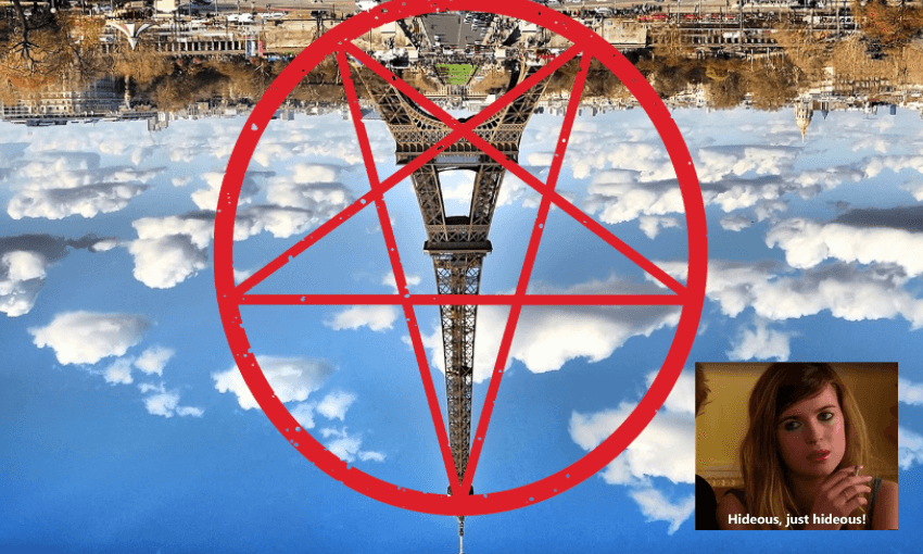 Once described by Aleksandr Petrovsky’s daughter as “hideous” in season six of Sex in the City (Paris edition), the Eiffel Tower is very obviously Satanic. Invert this or any stock image of the Eiffel Tower. Case closed.