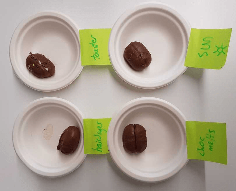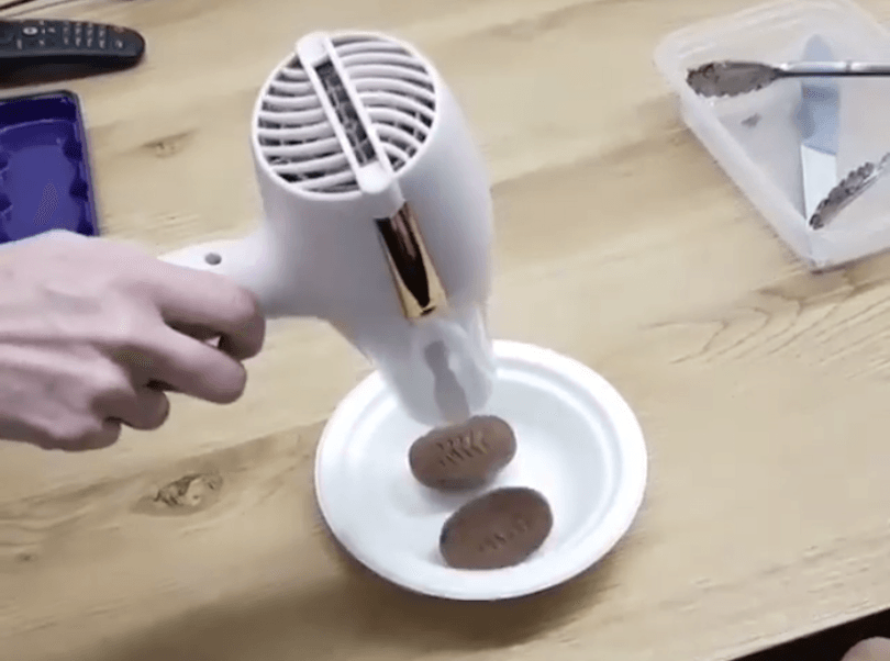 Did it work? Yes, but we were slightly overzealous with the hairdryer and the chocolate melted a little too much. Hence the aesthetics of this egg weren’t the greatest. Points off also for the slight grossness of using a hairdryer for food preparation, and for the fact you need to be in possession of a hairdryer to perform this eggsperiment.