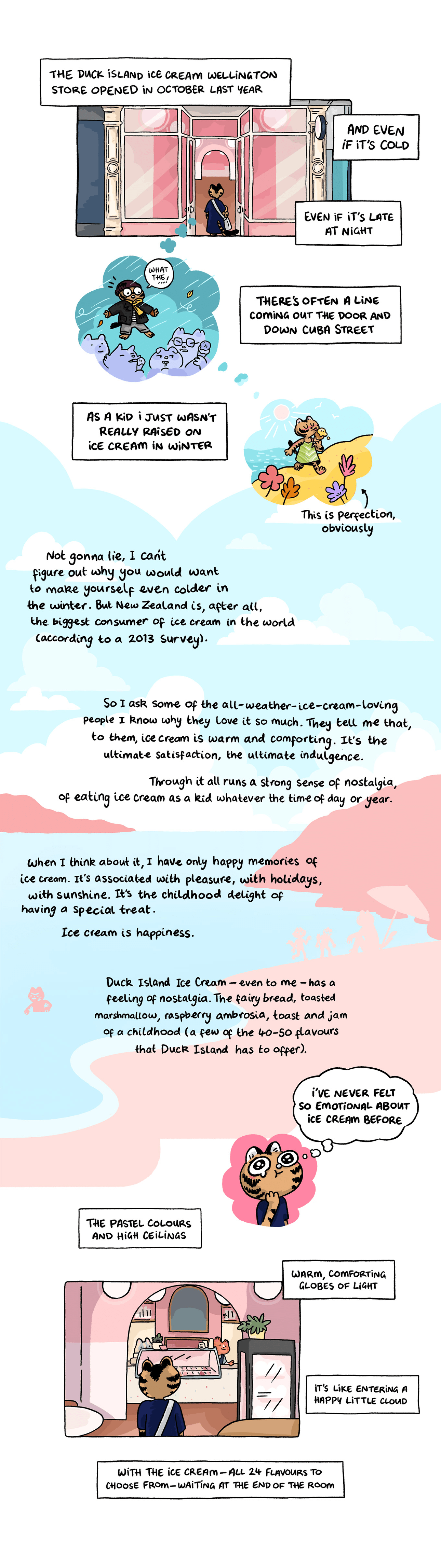 Since Duck Island opened its first Wellington store last year, lines have formed down Cuba St as ice cream fanatics wait for their fix. Liliana Mañetto Quick explains.