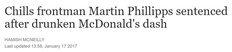 It’s not all fun and games though. Chills frontman Martin Phillipps was convicted of drink driving earlier this year after getting nabbed by the fuzz on a drunken Maccas run. In Phillipps defence there’s no Uber in Dunedin, and when that nuggy fever strikes…