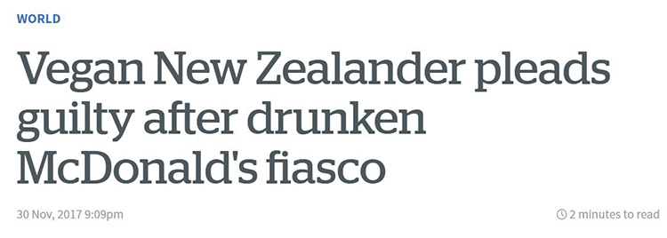 In other chicken-related news, Kiwi vegan Kane Olsen, now a local Sydney battler, was charged this week for going on a nugget-fueled rampage at the Thornleigh McDonald’s on Sydney’s north shore. After learning there were no nuggets available on the breakfast menu he is reported to have circled the drivethru abusing people and sitting on the horn before ordering 200 hash browns and parking his car in a tiff.
