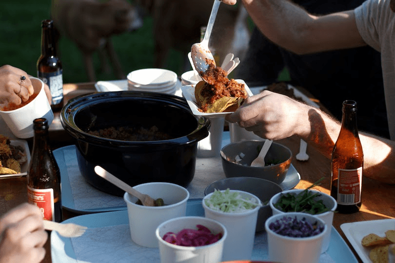 Chilli is always better the next day, so make this the day before, allow it to cool and put it in your slow cooker dish in the fridge. When it’s time to serve, heat it up in the slow cooker, surround with toppings and corn chips and let people build their own plate of nachos however they damn well please.